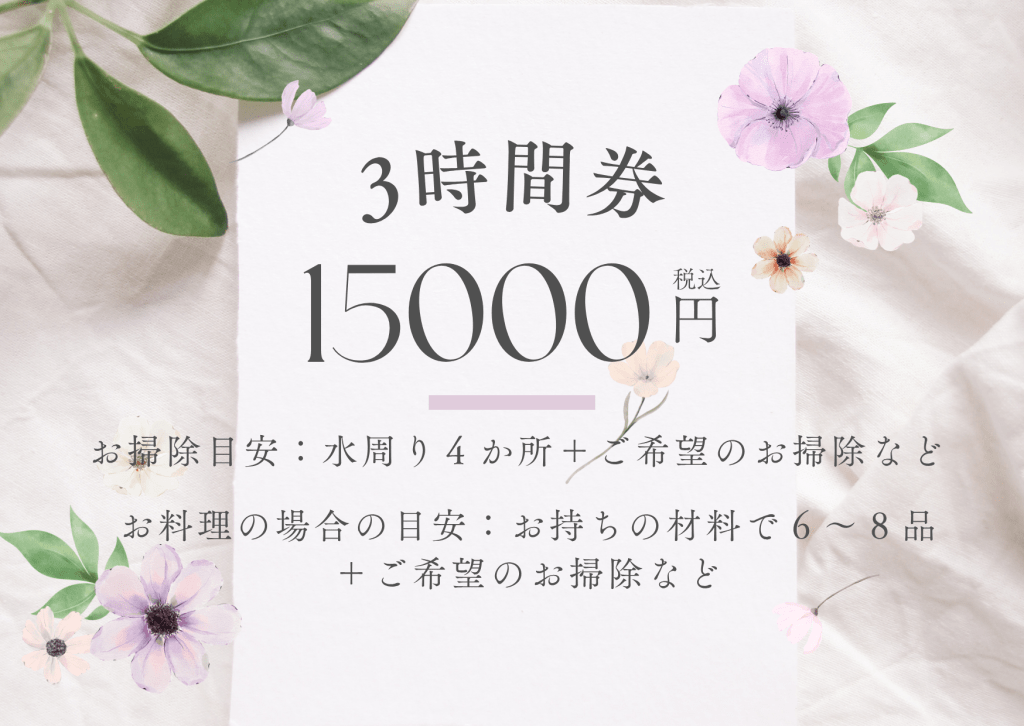 1時間/5000円~3時間/15000円からお選びいただけます。
